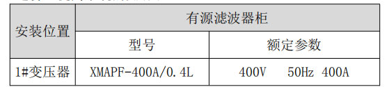 4.2 現(xiàn)場電能質(zhì)量選型和制訂 首先,要保證功率因數(shù)要達到要求,諧波治理方案要能夠保障主要諧波吸收或抵 消目的的實現(xiàn),要保障諧波治理設(shè)備投入使用后系統(tǒng)電路內(nèi)的諧波量 對設(shè)備影響較??;其次,系統(tǒng)改進方案要保障裝置自身的安全性。動 力柜穩(wěn)定電流按照正常 30%的設(shè)計要求使用 400A 有源濾波器可以治 理設(shè)備的諧波. 這個安全性主要是指在系統(tǒng)當(dāng)前存在的諧波電流、電壓的背景下,有 第三,需要設(shè)計方案的性價比,在可能的情況下盡量降低系統(tǒng) 造價,提高系統(tǒng)的實用性;